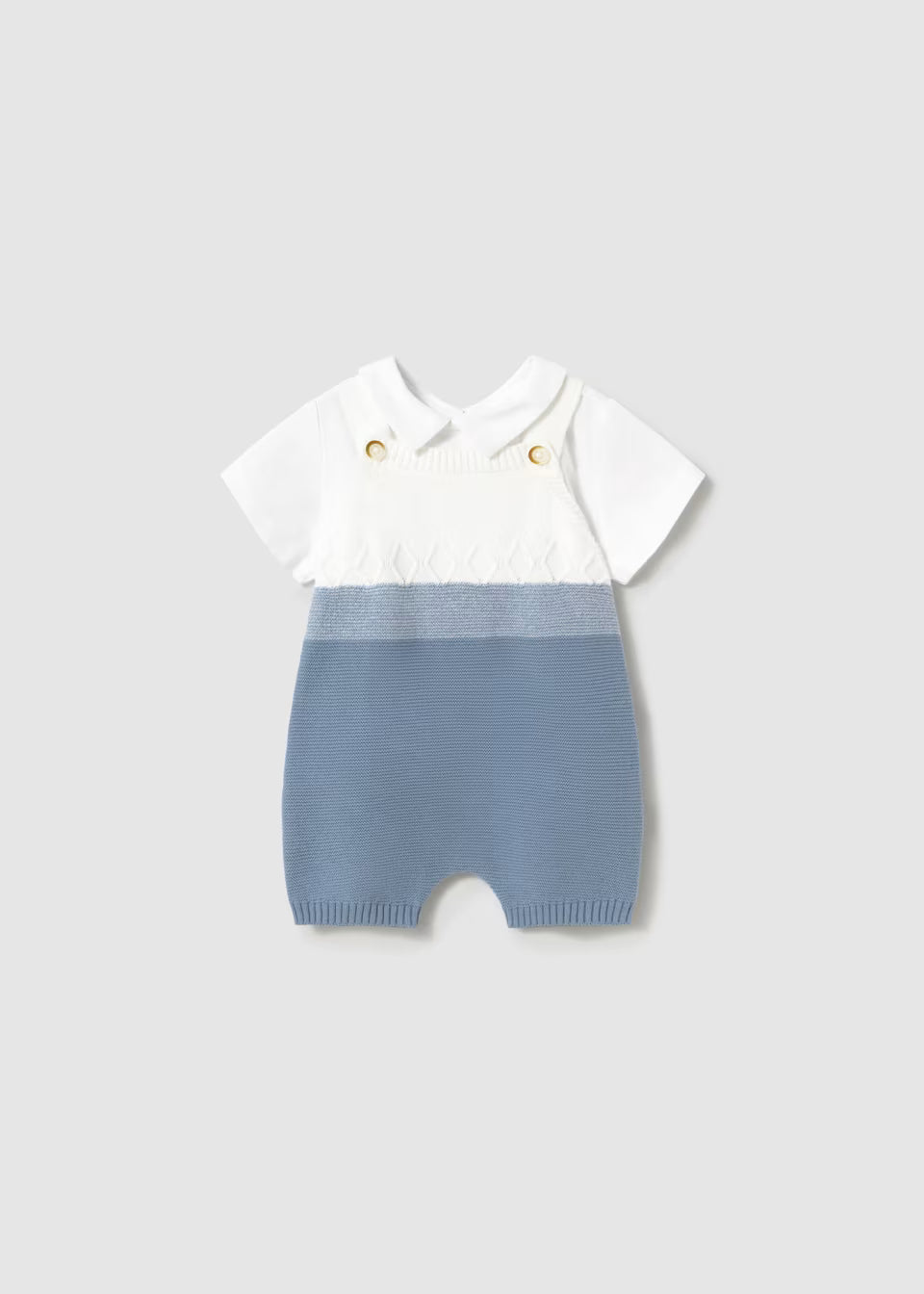 Conjunto de 2 piezas con tejido tricot en color azul y camiseta blanca. Diseñado con tejidos suaves y transpirables, este set combina elegancia y funcionalidad.