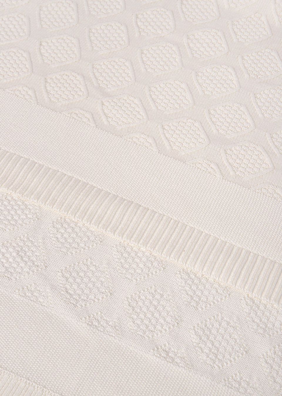 Manta para recién nacido de diseño envolvente en punto suave que ofrece confort al bebé en sus momentos de descanso.