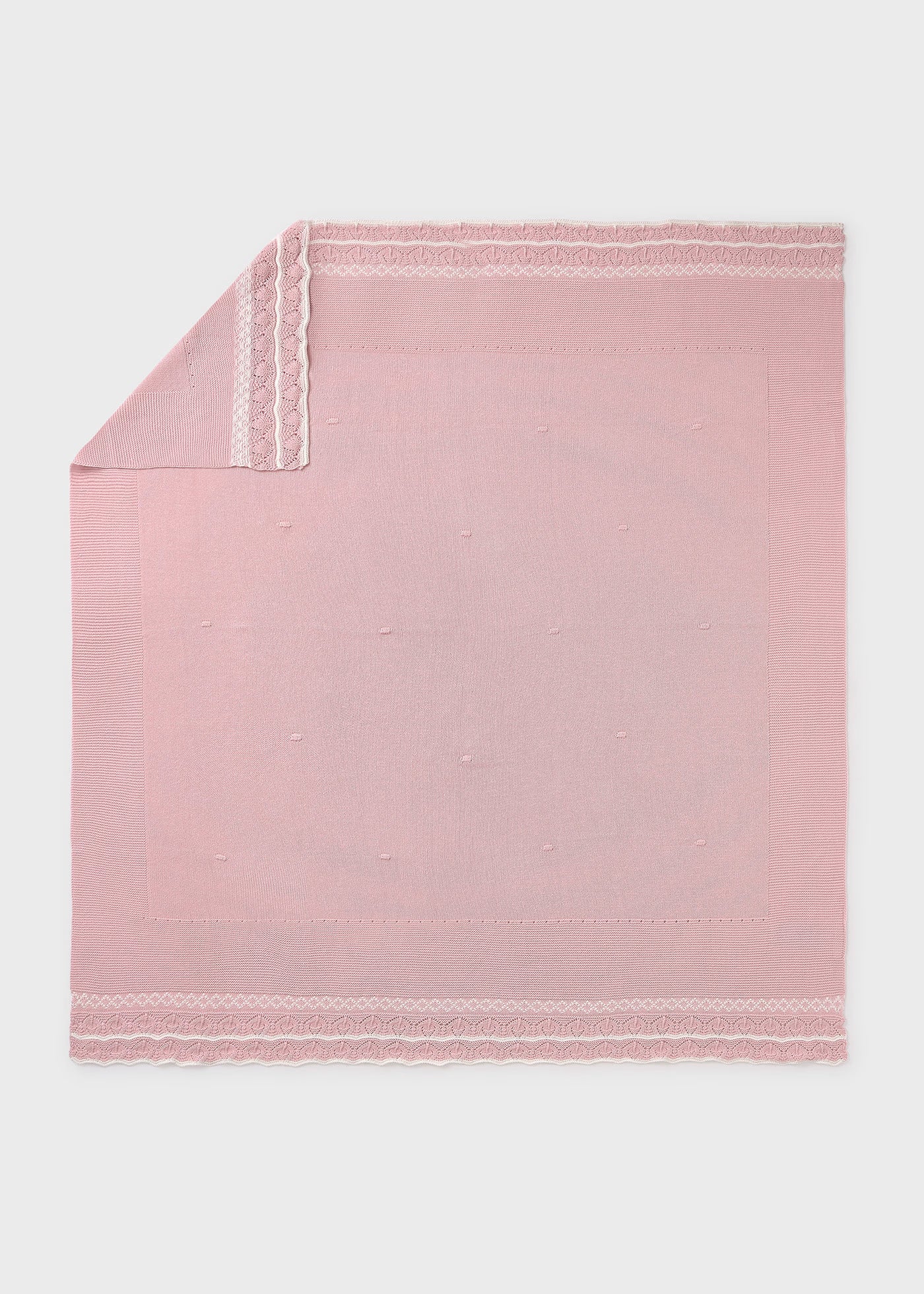 Manta para recién nacido de diseño envolvente en punto suave que ofrece confort al bebé en sus momentos de descanso.